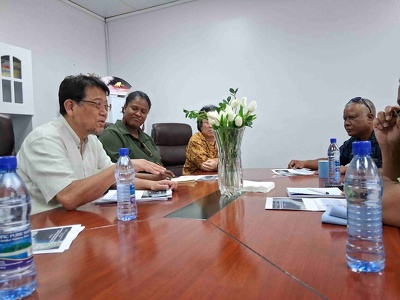 June 24, 2025 In Majuro, PI Kayane and Naya Sena, along with Ambassador Soma of Japan, paid a courtesy visit to Minister Lakjong, Special Advisor to the President and Minister of Environment.